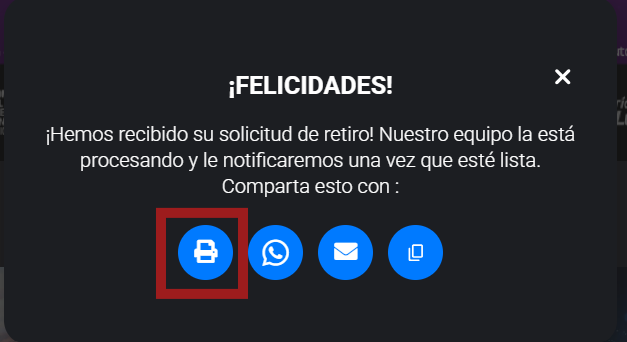 5.Luego se te dará un TOKEN o QR que deberás presentar en el Casino o Agencia junto con tu DNI para poder retirar el dinero.